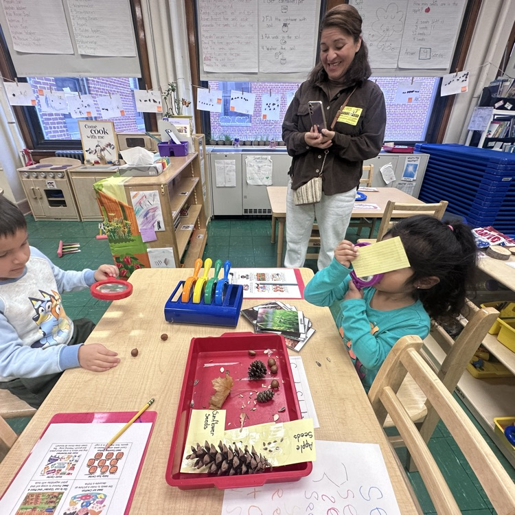 Mrs. DaSilva Brown's PreK from Washington celebrated the end of their Seed Study with some great activities that they got to share with their family and friends. Students got to use instruments made with seeds, make seed collages, use magnifying glasses to look at different kinds of seeds, pretend play in their garden, count seeds, and read books about seeds! We even used checklists to check off all the activities we completed ✔️ 🌱