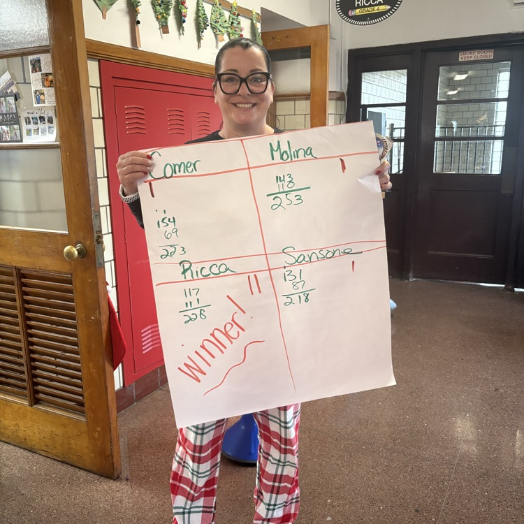 Mrs Ricca took home the trophy in Washington School's 5th annual fourth grade Candy Candy Olympics! 🎄