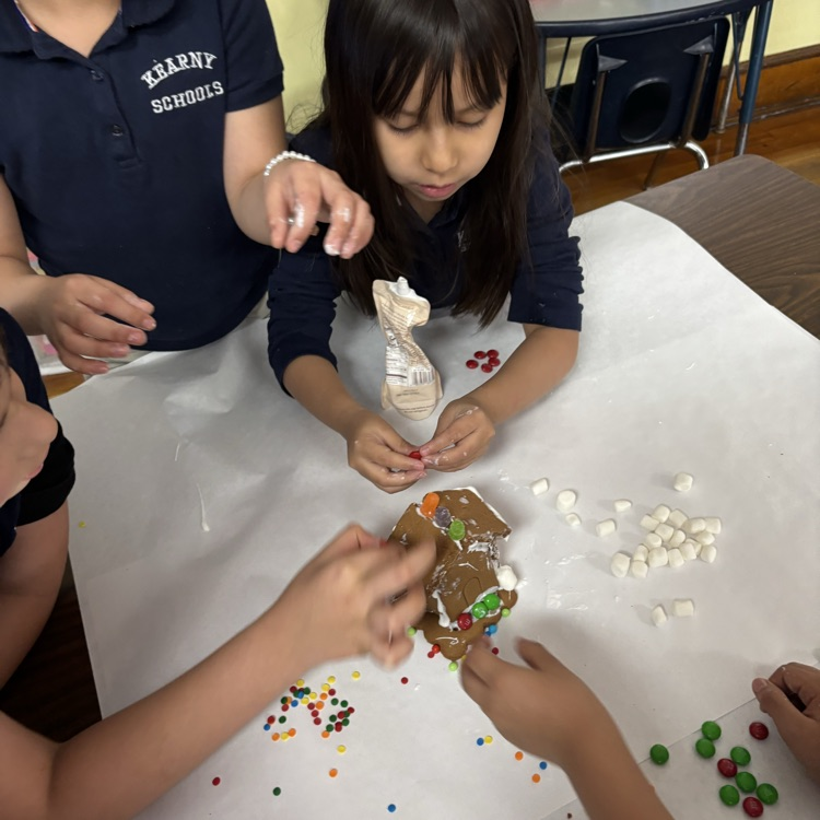 Washington School 3rd graders enjoyed making Gingerbread Houses today!